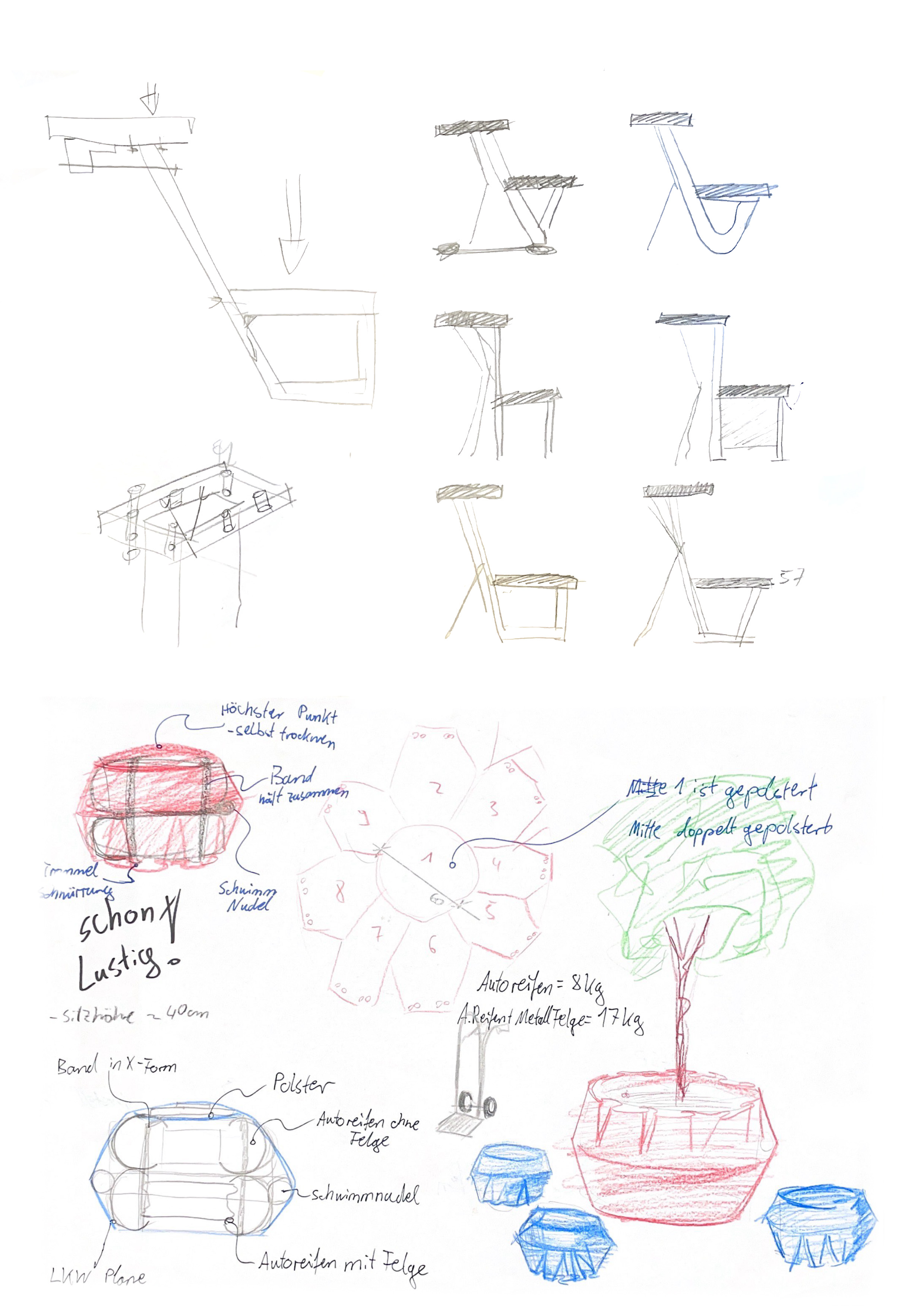 In Zusammenarbeit mit dem Landschaftsarchitektur- und Städteplanungsbüro Toponauten entstand eine Reihe an Möbeln für den öffentlichen urbanen Raum. Ein Teil der Möbel lässt sich adaptiv an dem Hotspotpot Topf befestigen. Im Gegenspiel dazu steht der Hotspothocker, aus alten Autoreifen gefertigt, für sich allein. Zusammen sollen sie den neu gewonnen schattigen Raum der Bäume zum Verweilen nutzbar machen.